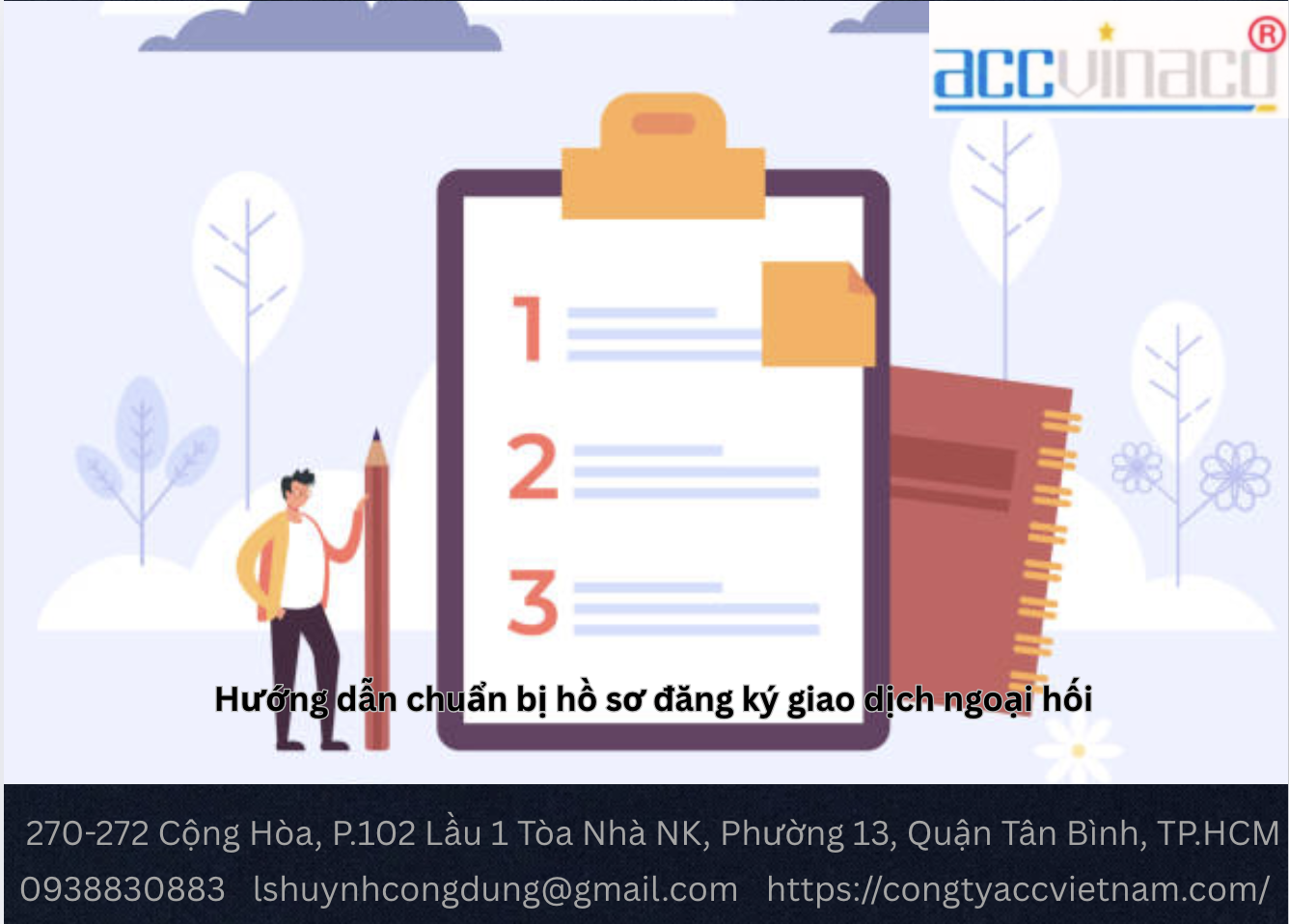 CÔNG TY LUẬT ACC cung cấp dịch vụ tư vấn và hỗ trợ chuẩn bị hồ sơ đăng ký giao dịch ngoại hối, đảm bảo doanh nghiệp tuân thủ pháp luật và thực hiện giao dịch hiệu quả. Nếu bạn đang muốn thành lập doanh nghiệp để tham gia giao dịch quốc tế, hãy tham khảo dịch vụ thành lập công ty để bắt đầu thuận lợi.