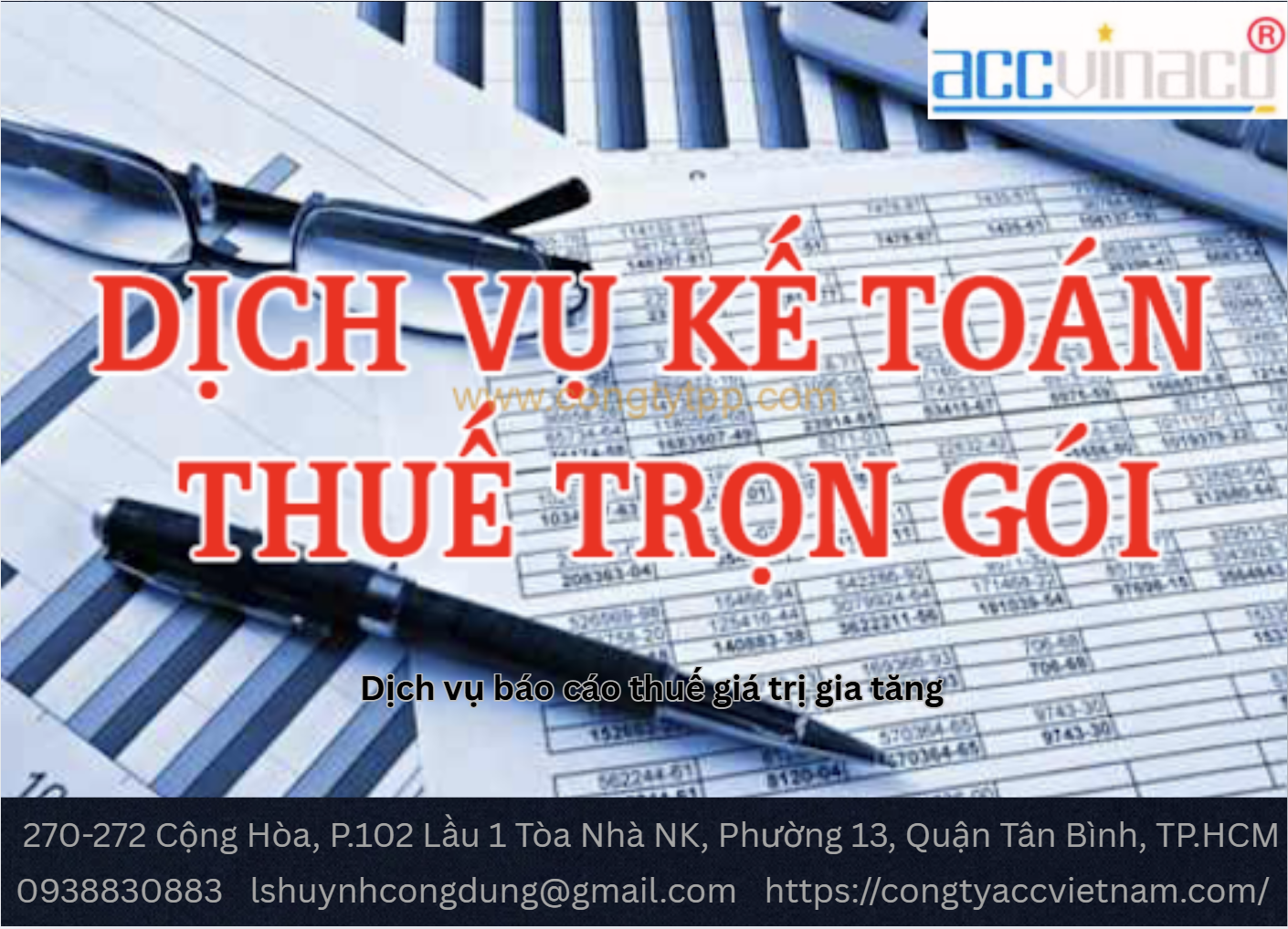 CÔNG TY ACCVINACO cung cấp dịch vụ báo cáo thuế giá trị gia tăng toàn diện, từ kê khai thuế đến hỗ trợ hoàn thuế. Xem thêm chi tiết tại dịch vụ kế toán thuế.