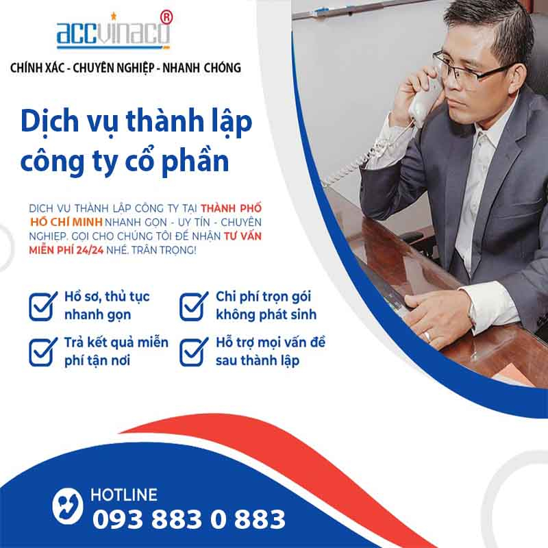 Việc thành lập công ty cổ phần là bước khởi đầu quan trọng cho hành trình kinh doanh của bạn. Với dịch vụ chuyên nghiệp, nhanh chóng, và chi phí hợp lý từ ACCVINACO Việt Nam, bạn có thể yên tâm tập trung vào phát triển chiến lược kinh doanh mà không phải lo lắng về các thủ tục pháp lý phức tạp. Hãy liên hệ ngay với chúng tôi qua Hotline: 093 883 0 883 hoặc truy cập Dịch vụ thành lập công ty để được hỗ trợ tốt nhất!