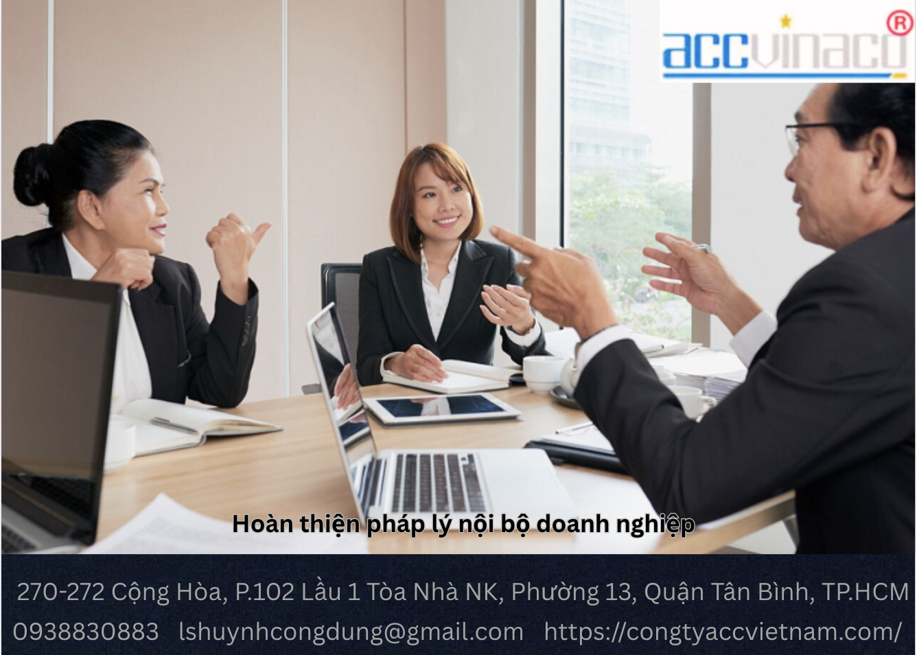 CÔNG TY ACCVINACO cam kết hỗ trợ doanh nghiệp hoàn thiện pháp lý nội bộ với chi phí hợp lý. Để tìm hiểu thêm, bạn có thể tham khảo bảng giá dịch vụ kế toán thuế hoặc liên hệ qua Hotline: 093 883 0 883.