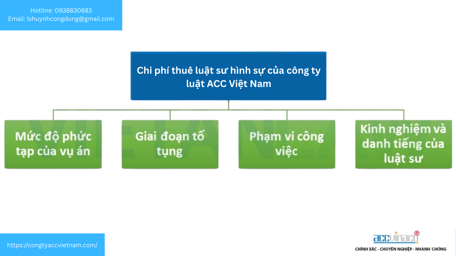 Chi phí thuê luật sư hình sự tại ACCVINACO sẽ phụ thuộc vào nhiều yếu tố, bao gồm: