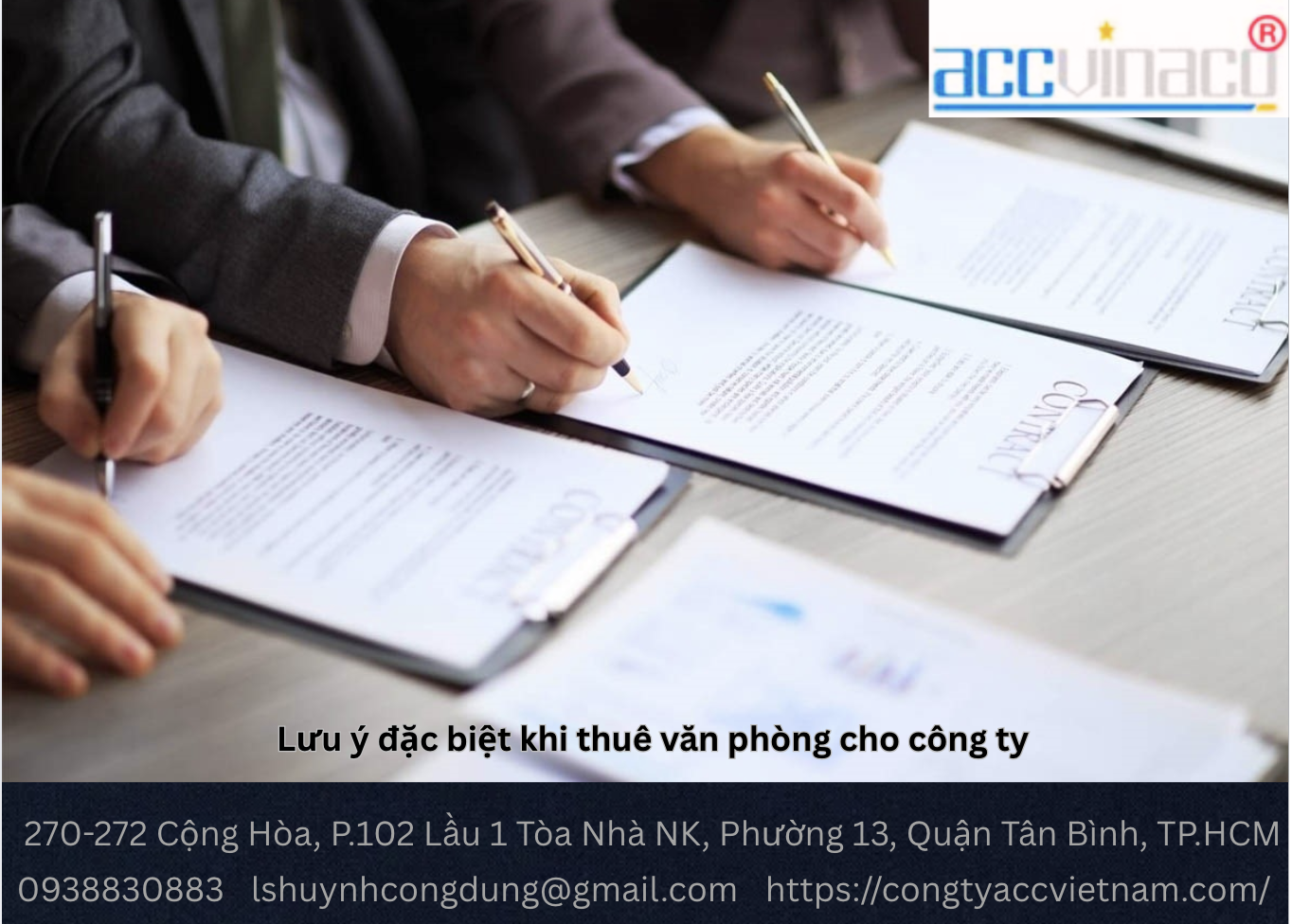 CÔNG TY LUẬT ACC cam kết hỗ trợ doanh nghiệp thuê văn phòng đúng quy định, với chi phí hợp lý. Để tìm hiểu thêm, bạn có thể tham khảo bảng giá dịch vụ kế toán thuế hoặc liên hệ qua Hotline: 093 883 0 883.
